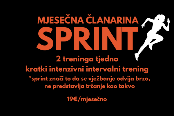 - Sprint Članarina (19€) - 2x trening sprint intervala, uto 6.00, pet 6.00